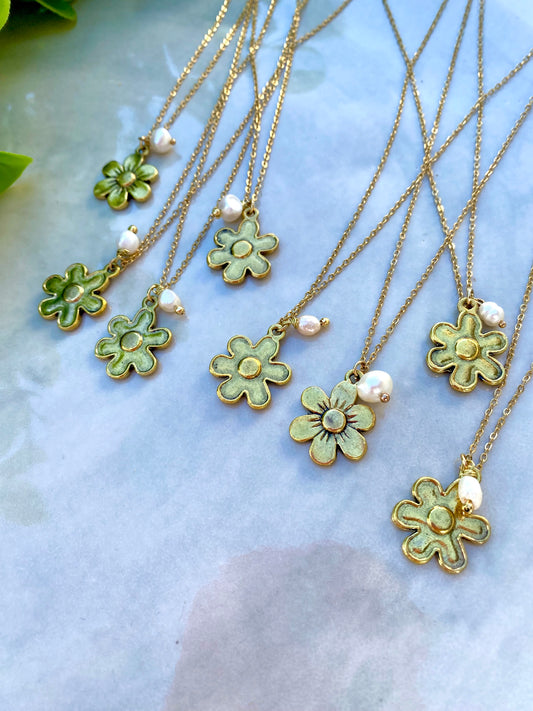 KD050800- Collar de cadena con Dije de Flor y Perla