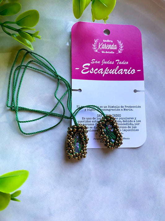 KD230078- Escapulario Mini de San Judas Tadeo con Bordado de Chaquira Dorada