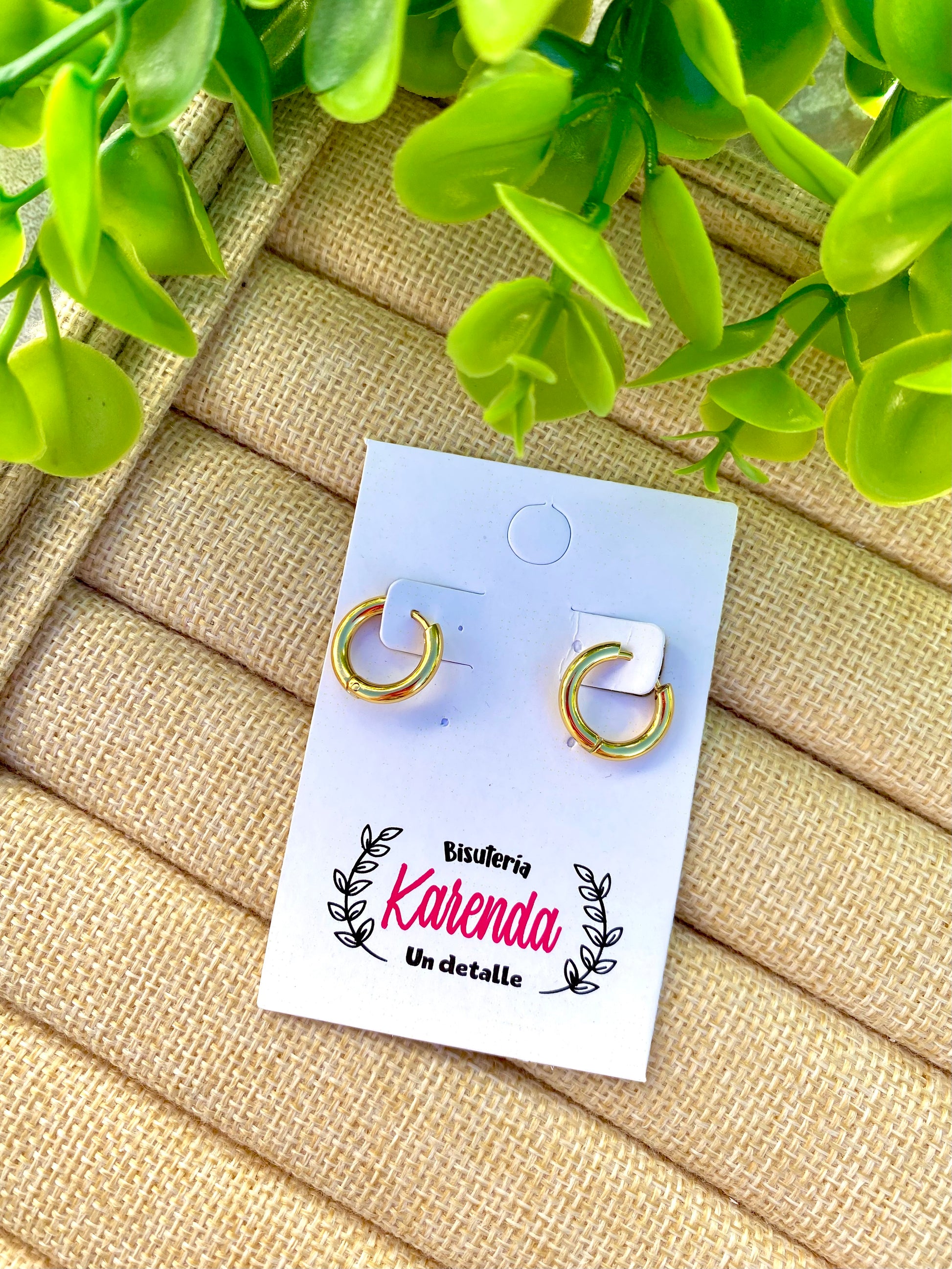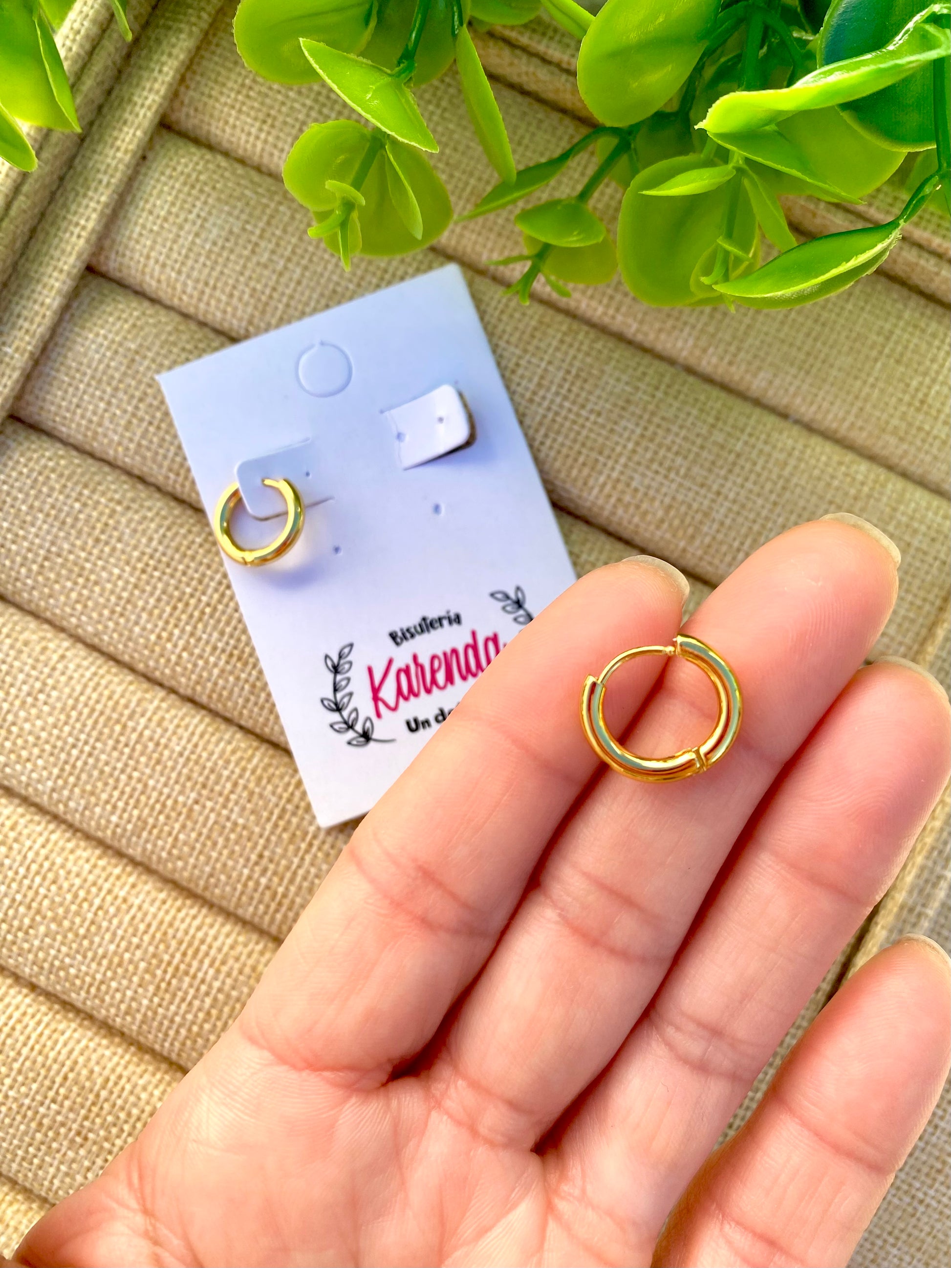 Aretes Huggies clásicas de Acero Inoxidable con baño de color dorado.