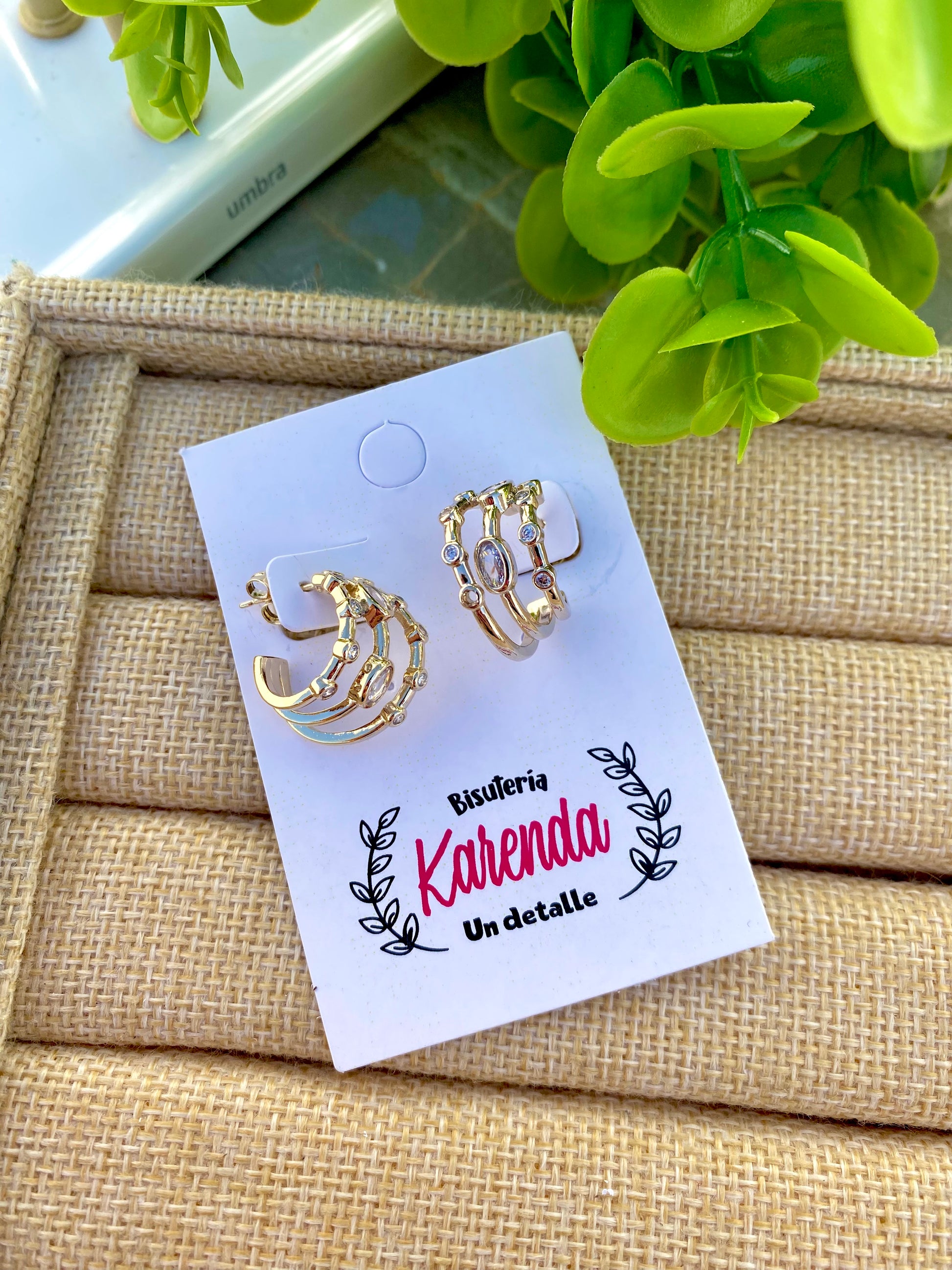 Arracadas pequeñas con tres líneas de cristales incrustados.