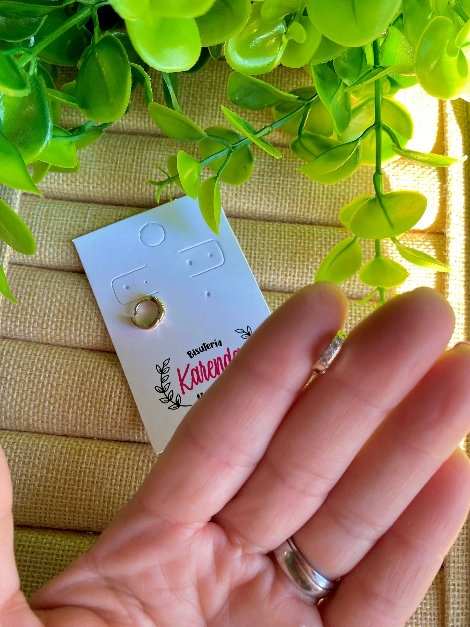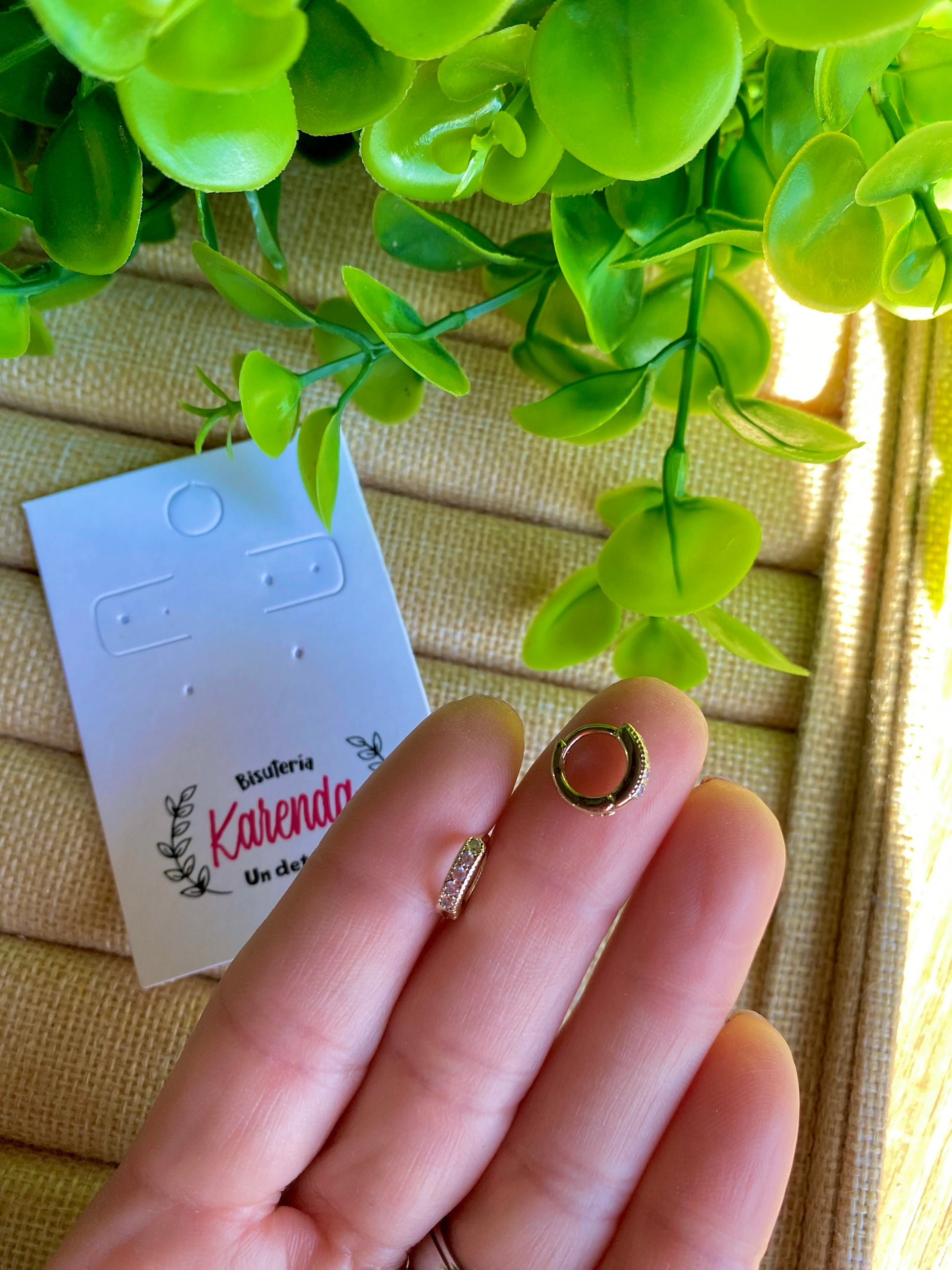 Aretes Huggies Mini con detalles de cristal en una linea.