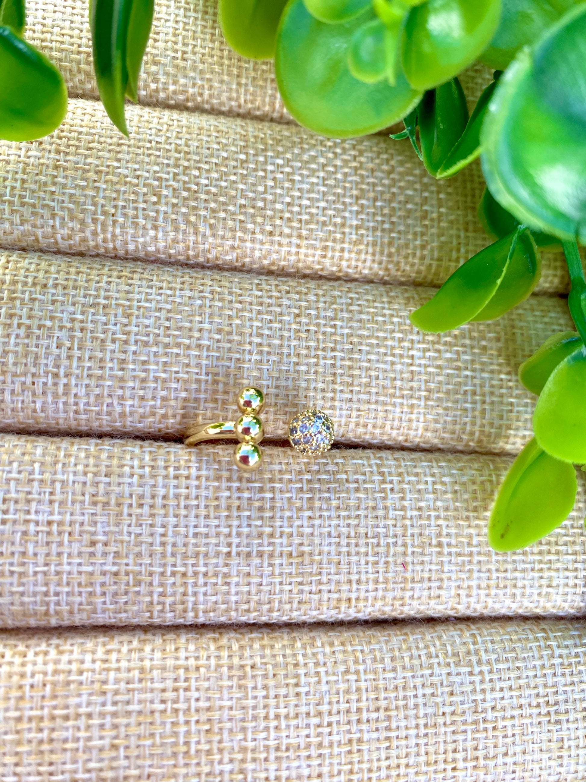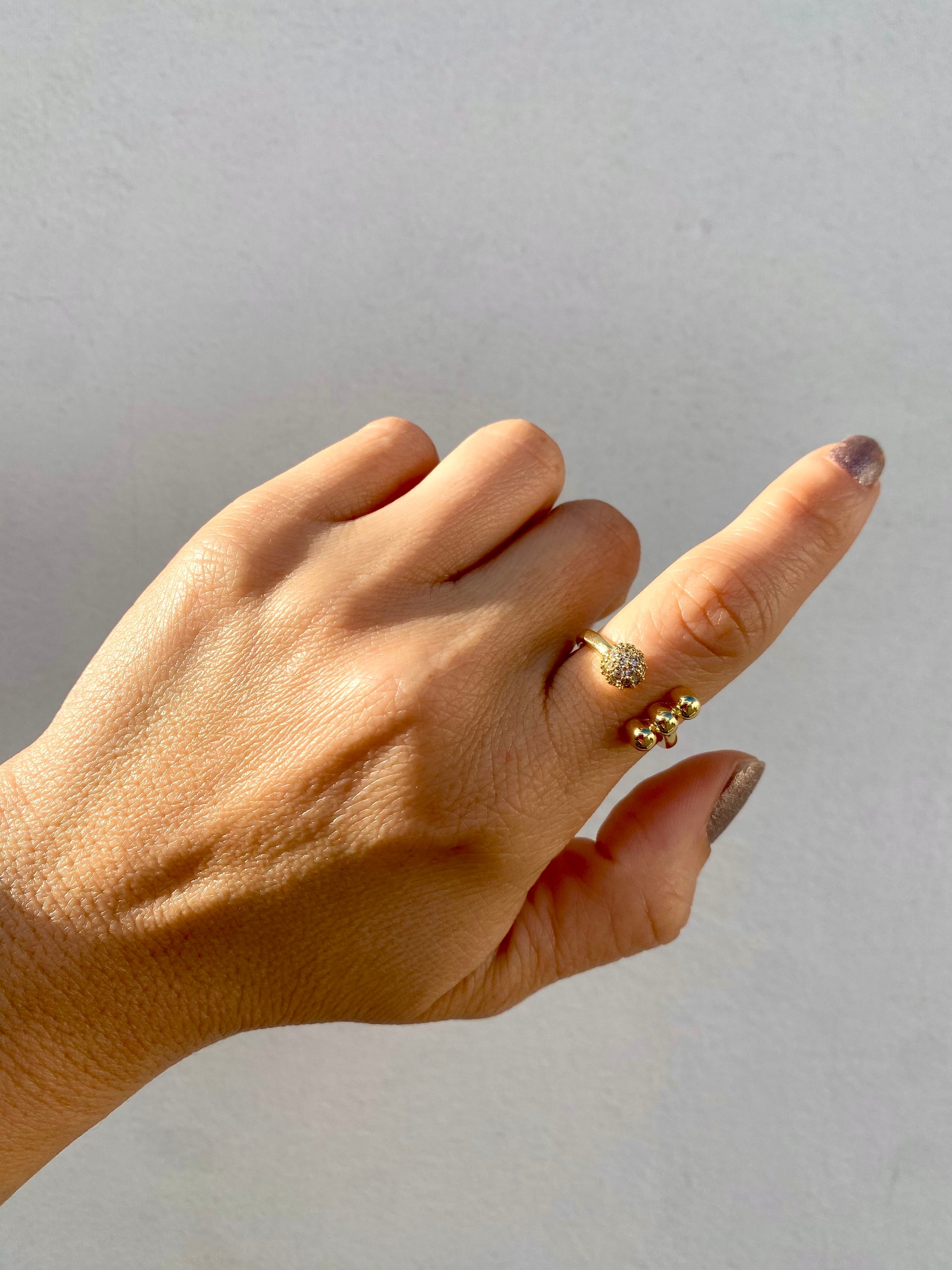 Anillo Ajustable con formas de Bolitas y Zirconia.
