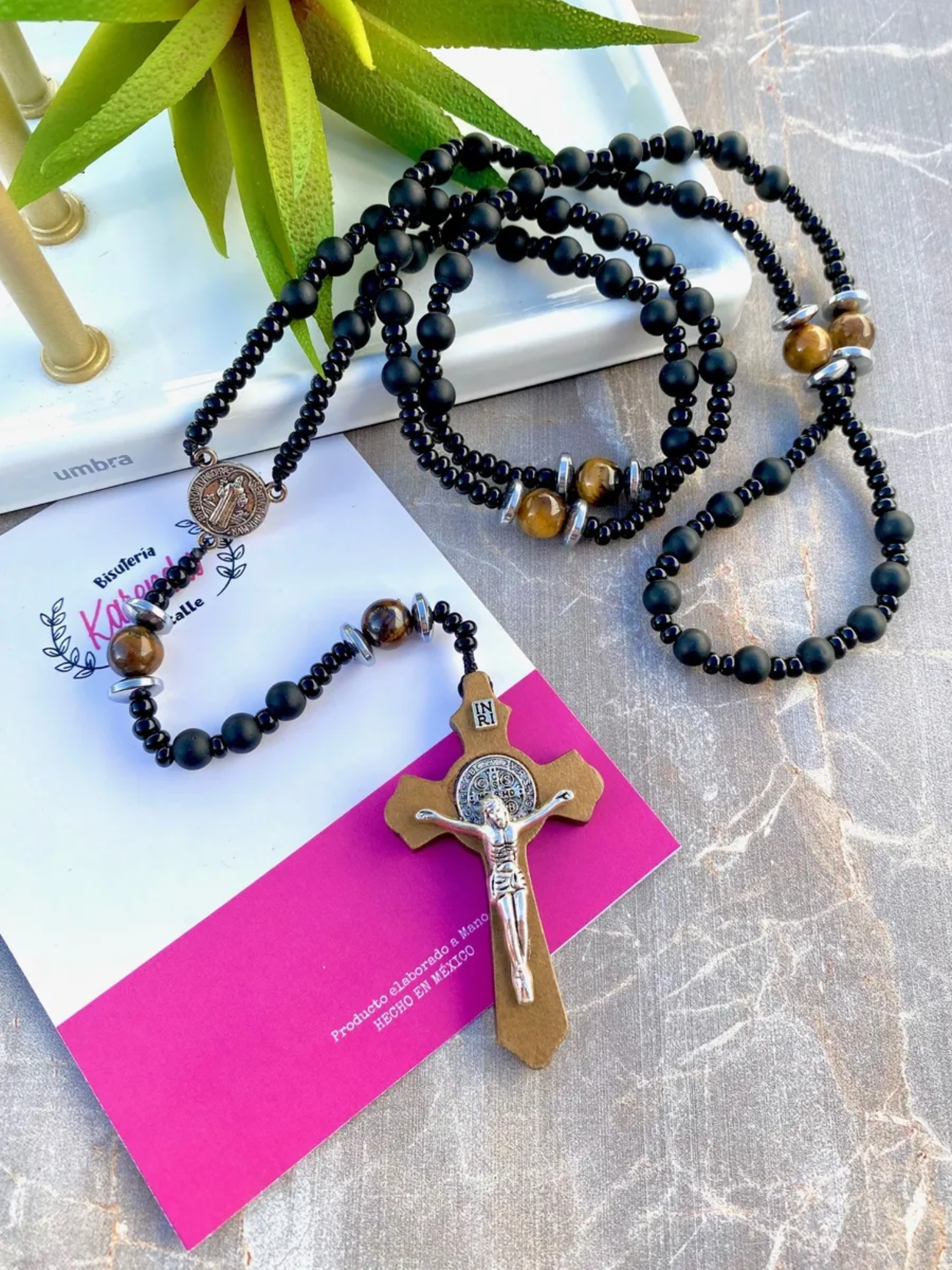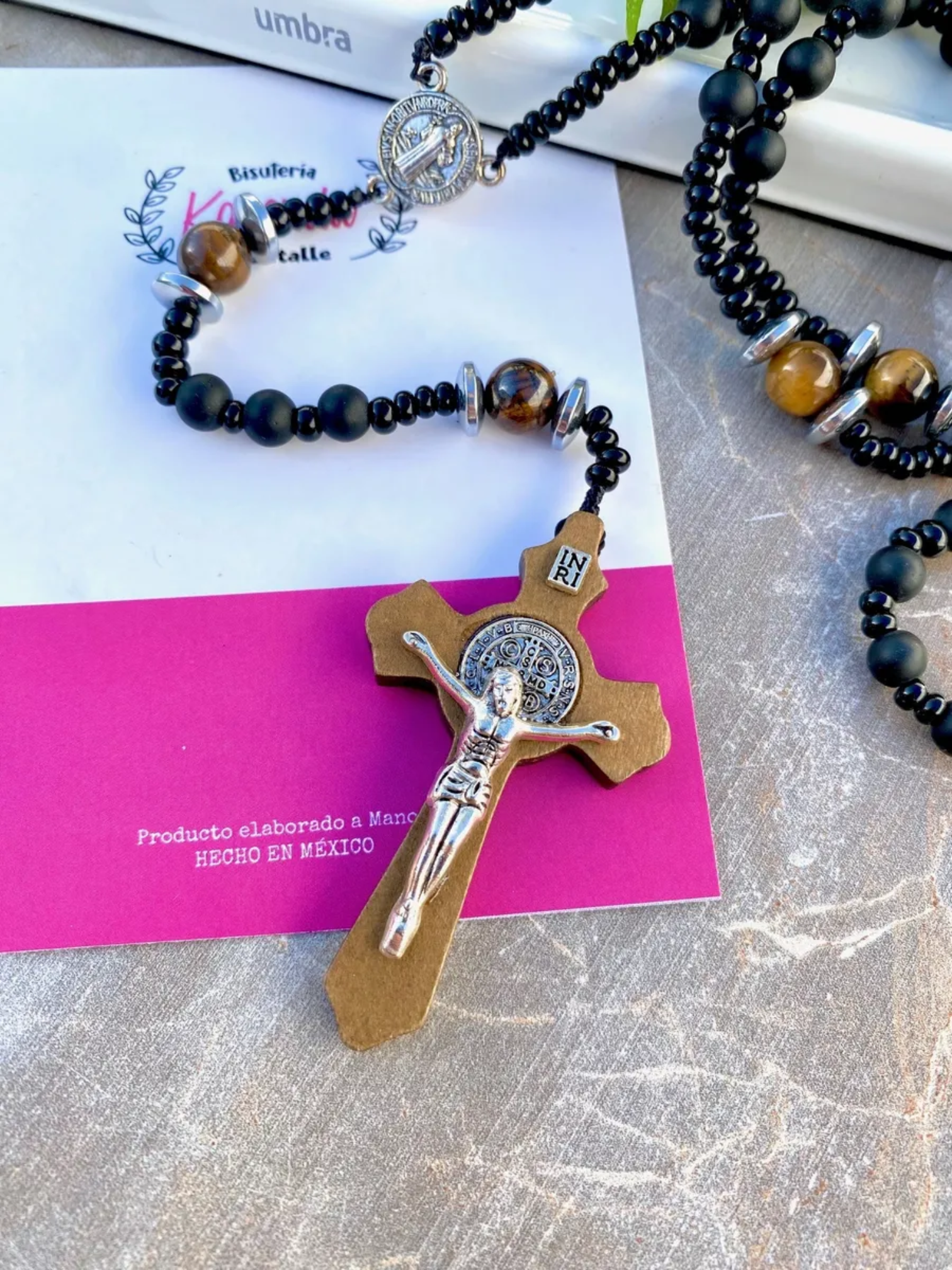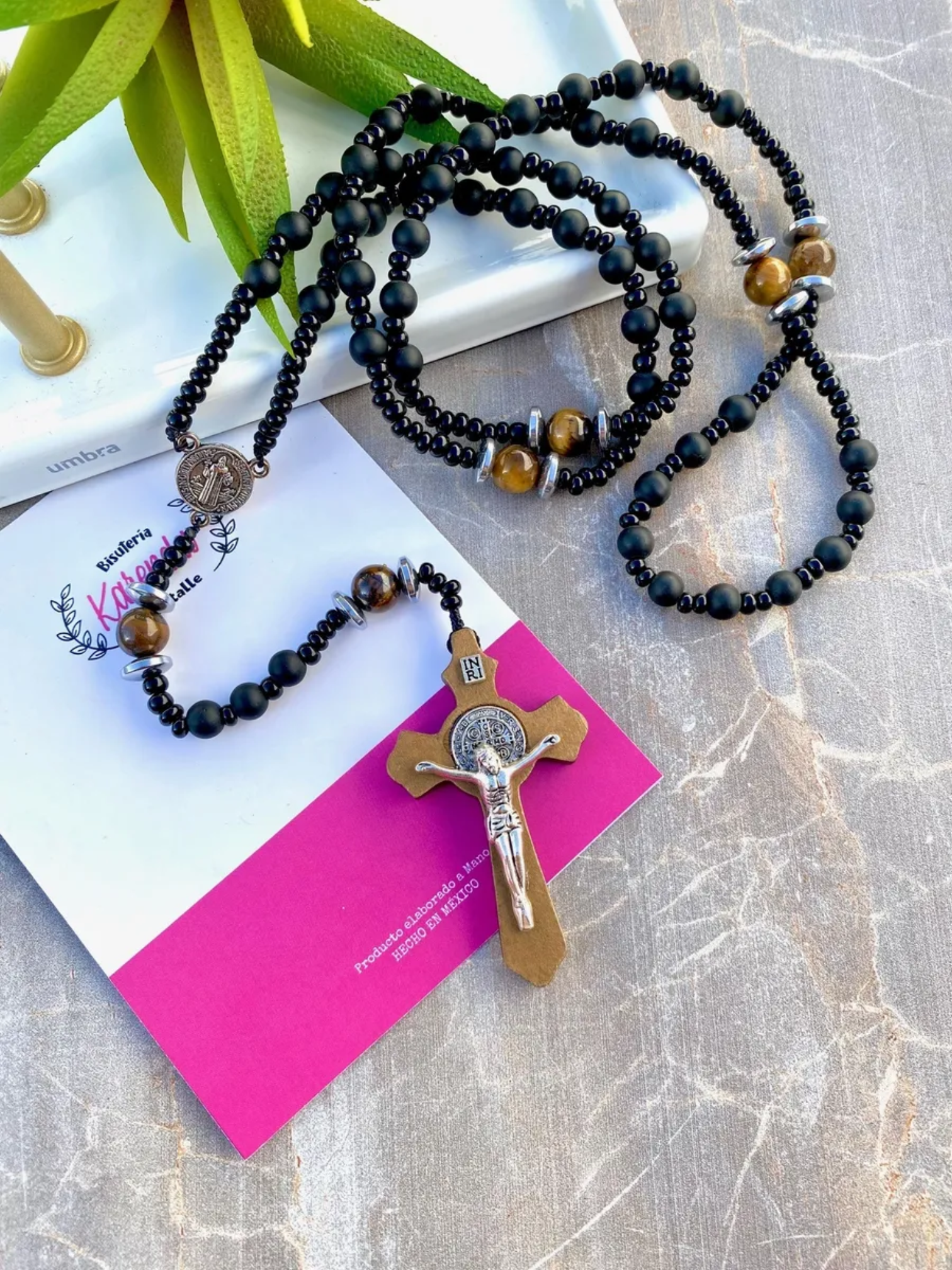 KD050711- Rosario Católico de San Benito con Ojo de Tigre