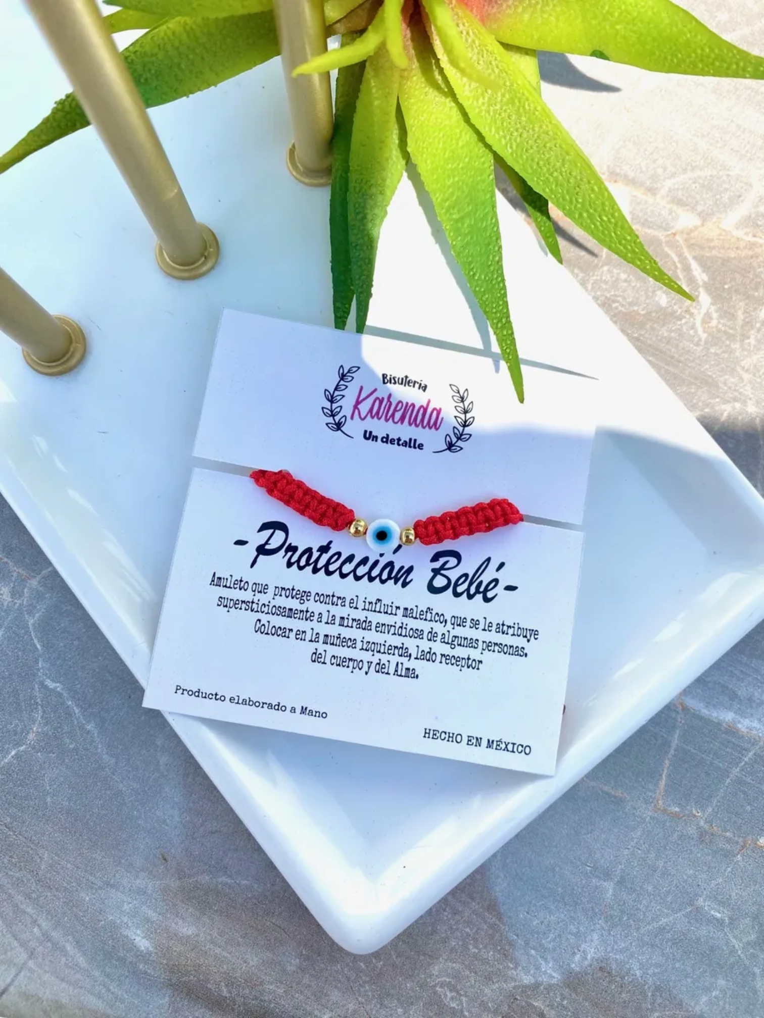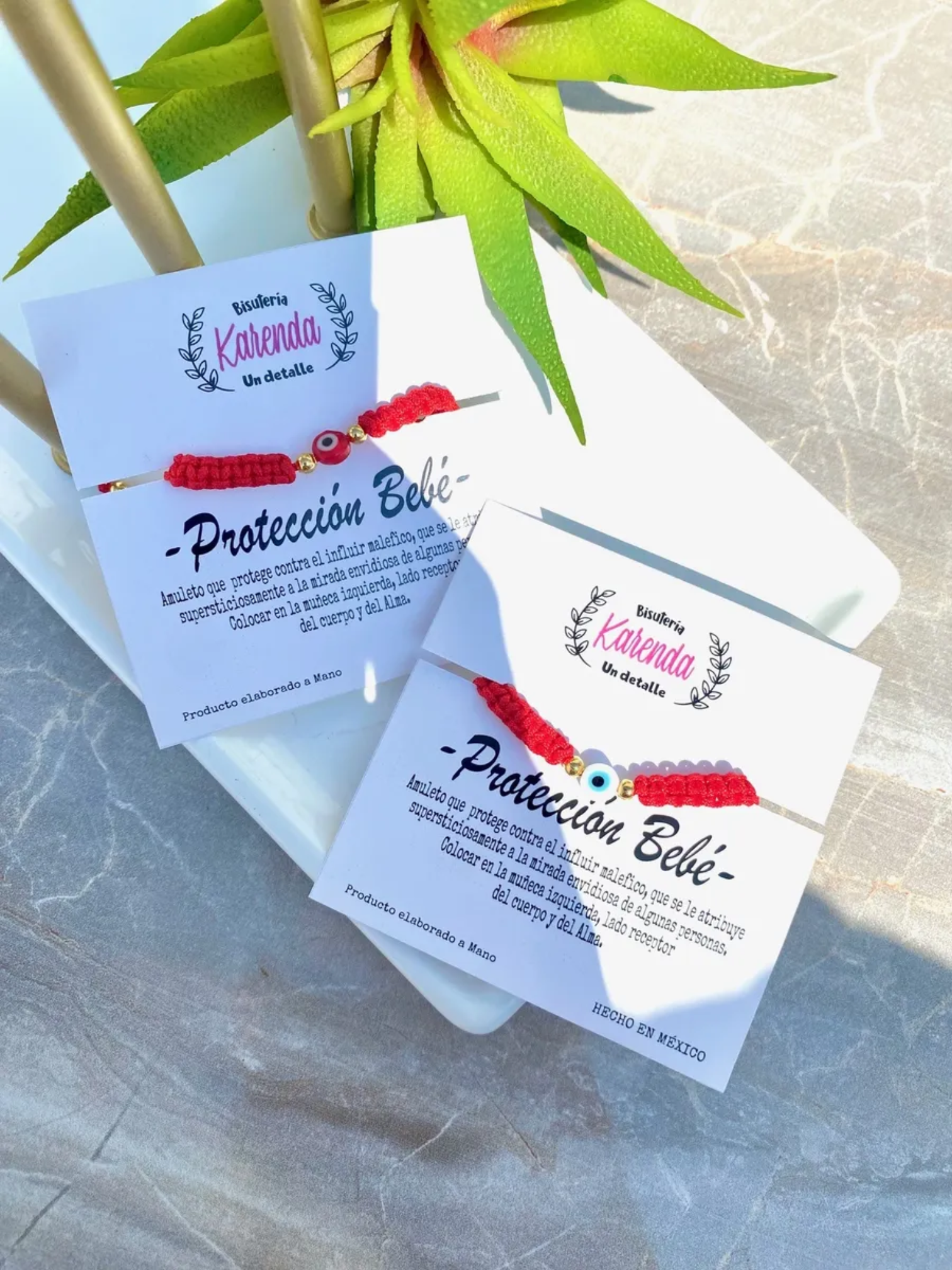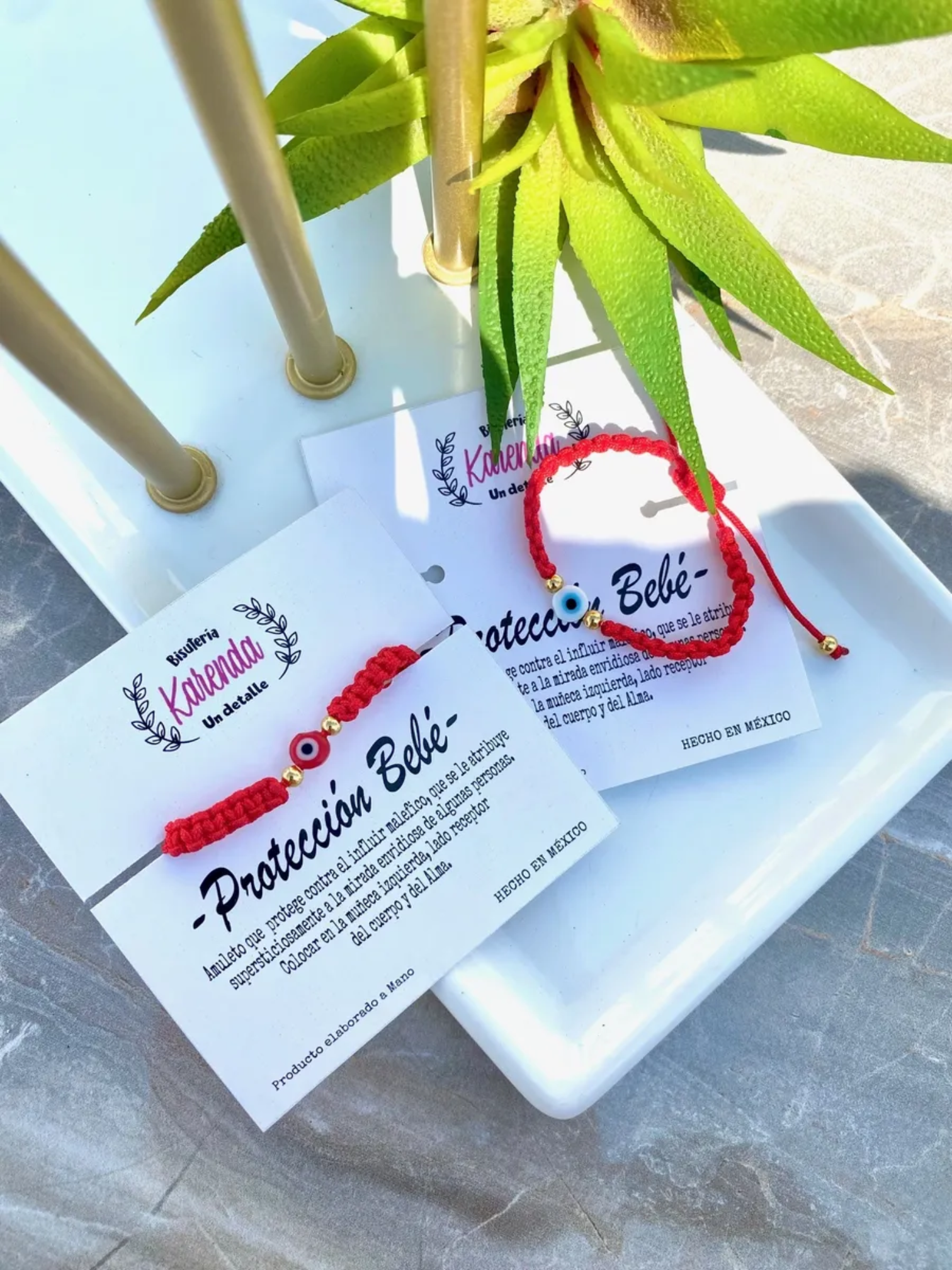 KD090069R- Pulsera de Bebe Protección con Tejido Macramé y Ojito Turco Plano
