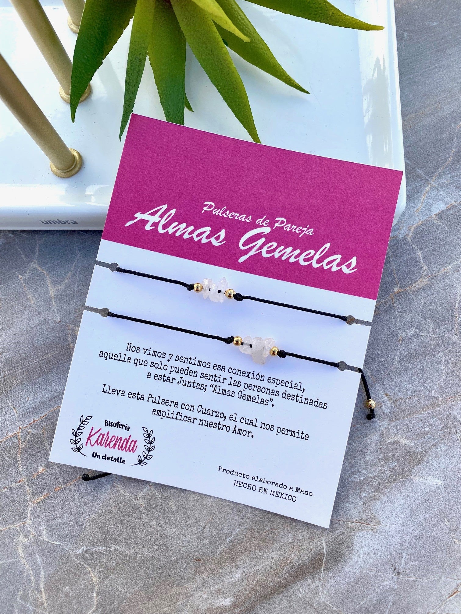 KD090097-Set de Pulseras de Pareja "Almas Gemelas" con Cuarzo Rosa