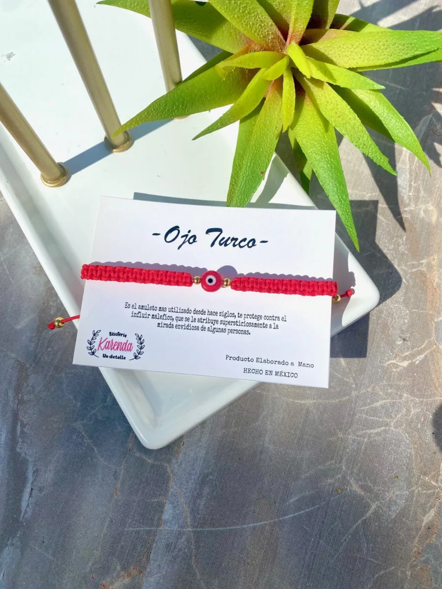 KD090150R- Pulsera Tejida con Ojo Turco combinación en color Rojo