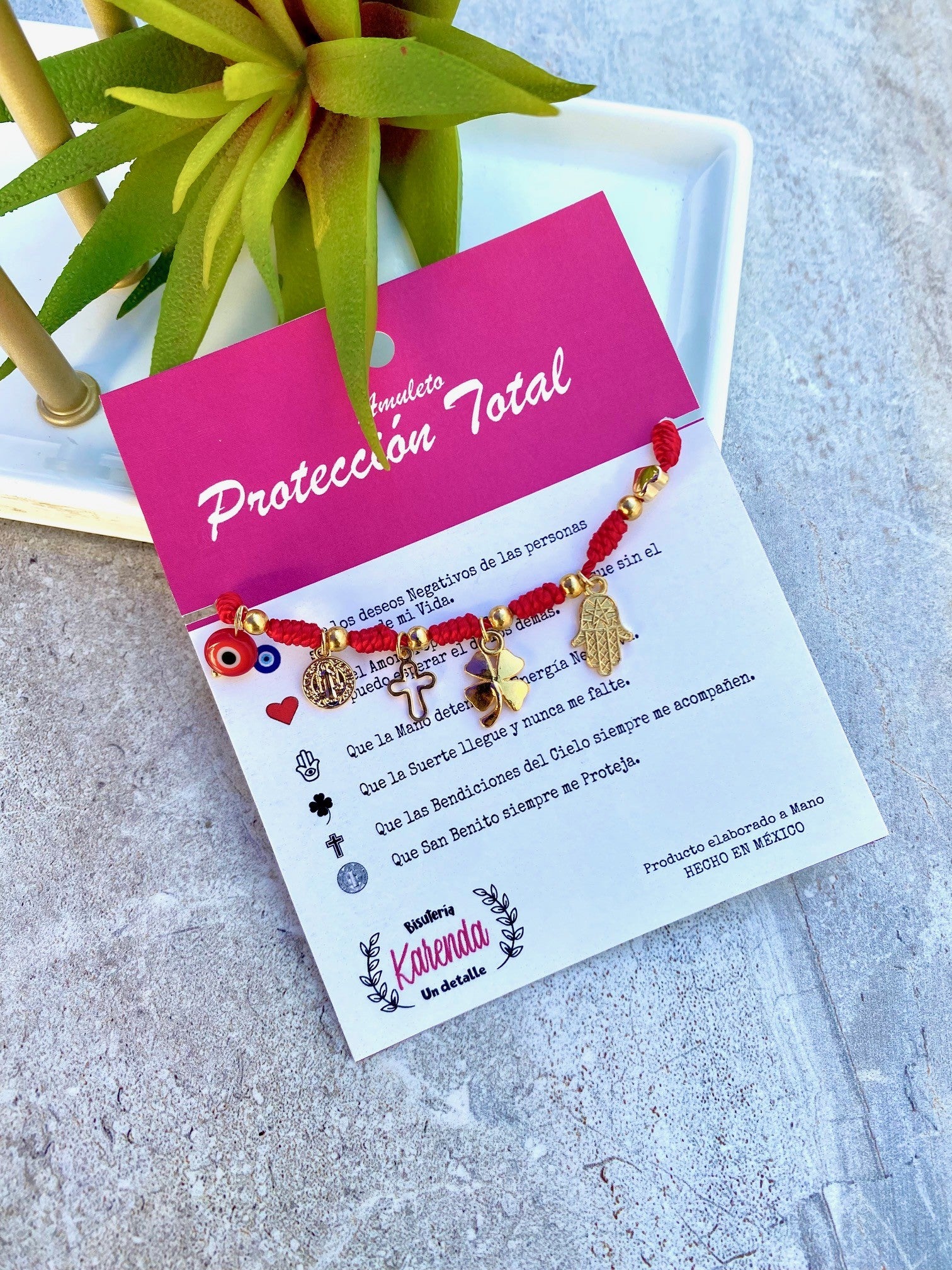 KD090203- Pulsera 7 Nudos con Dijes de Protección Total