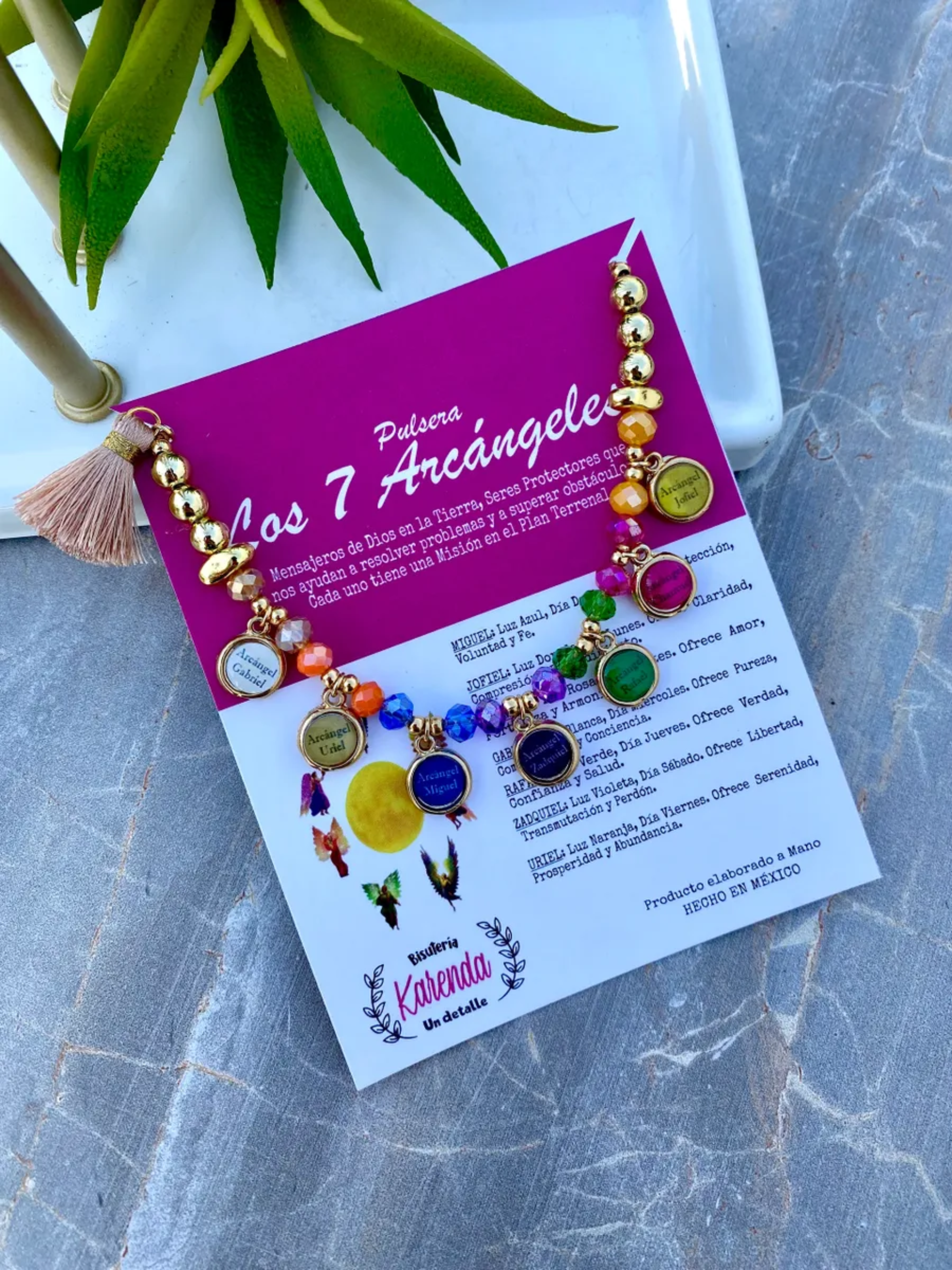 KD090205- Pulsera de 7 Arcángeles con cuentas de Cristal