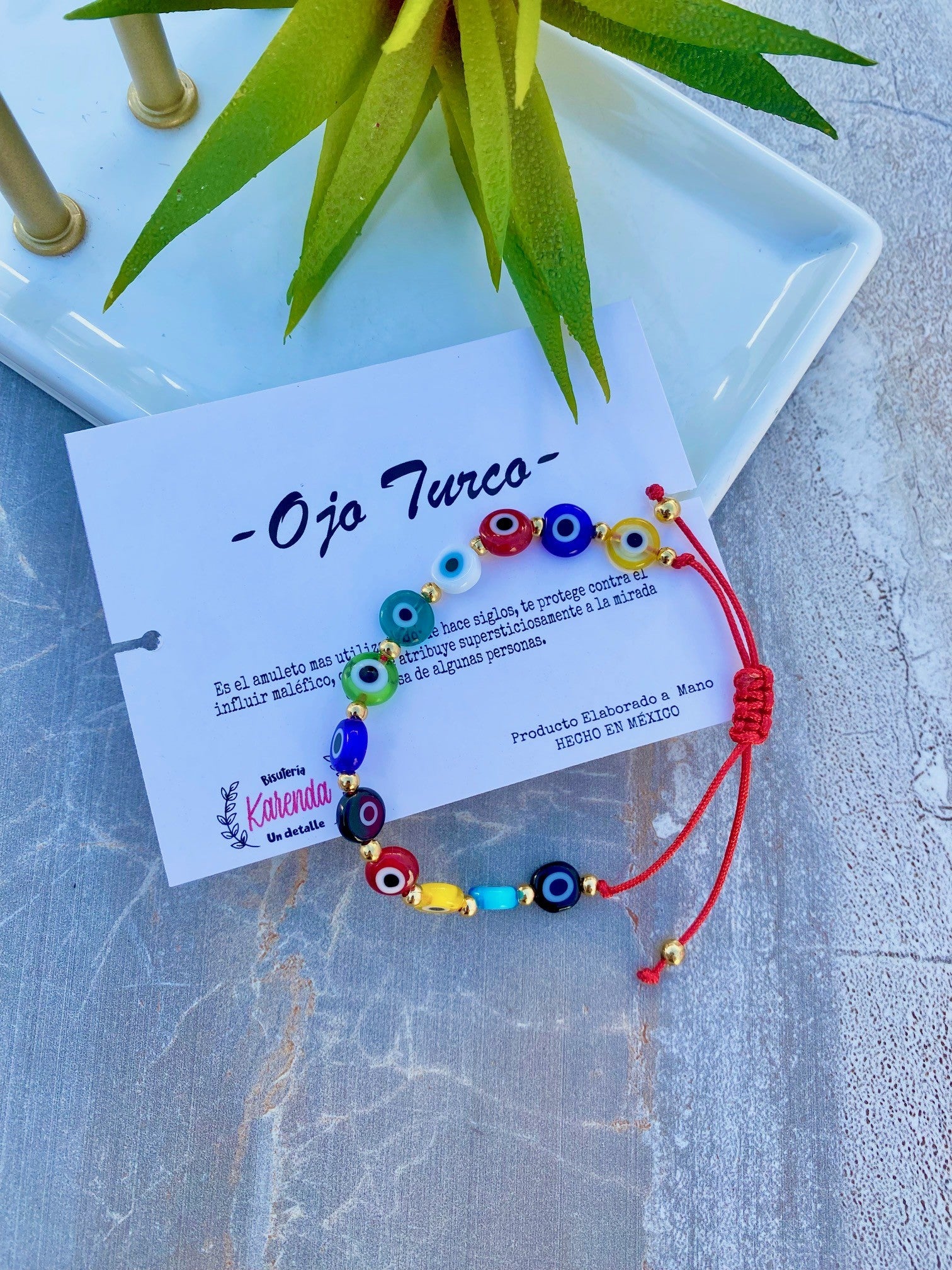 Pulsera de Protección, elaborada con hilo y ojitos turcos planos de cristal de 8mm.