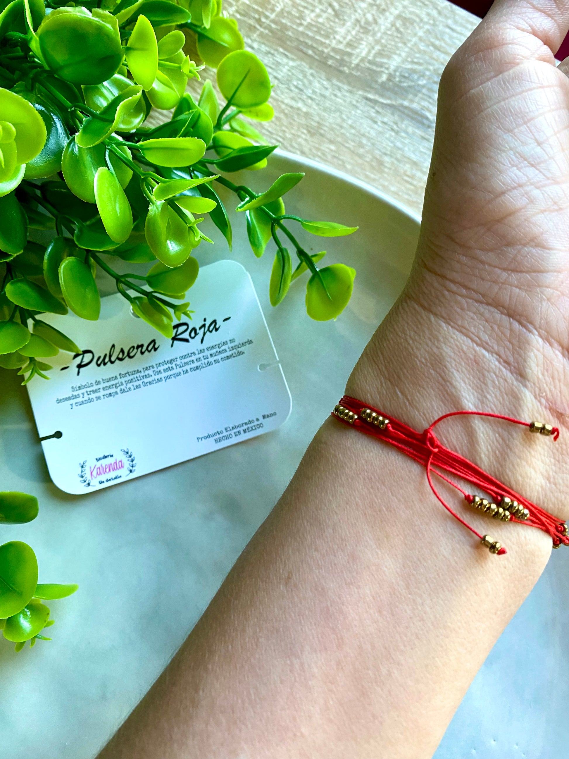 Pulsera Roja de Protección estilo enrollable con detalles de Chaquira.