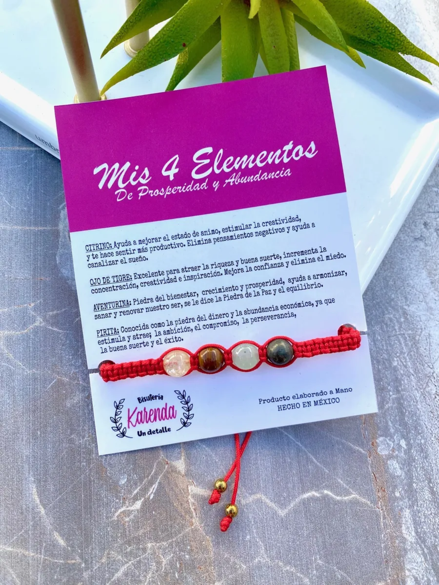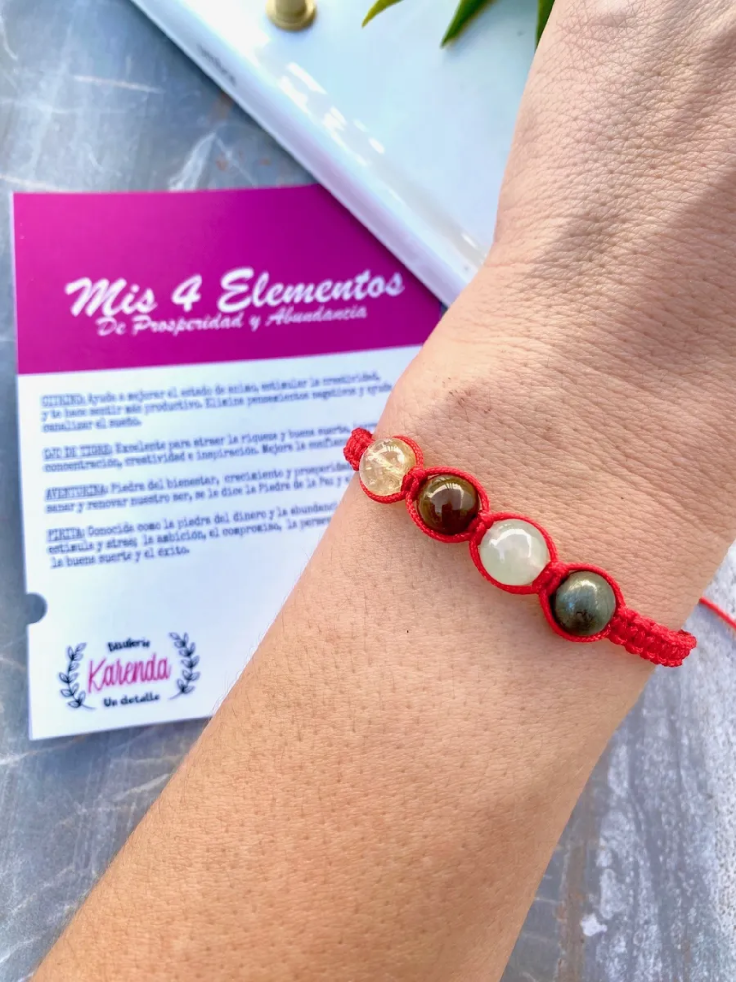 Pulsera de Hilo elaborada con Tejido Macramé y detalles de Piedra Natural( Pirita, Citrino, Aventurina Verde y Ojo de Tigre), donde sus bondades tienen amplios beneficios y mas al usarse juntas.