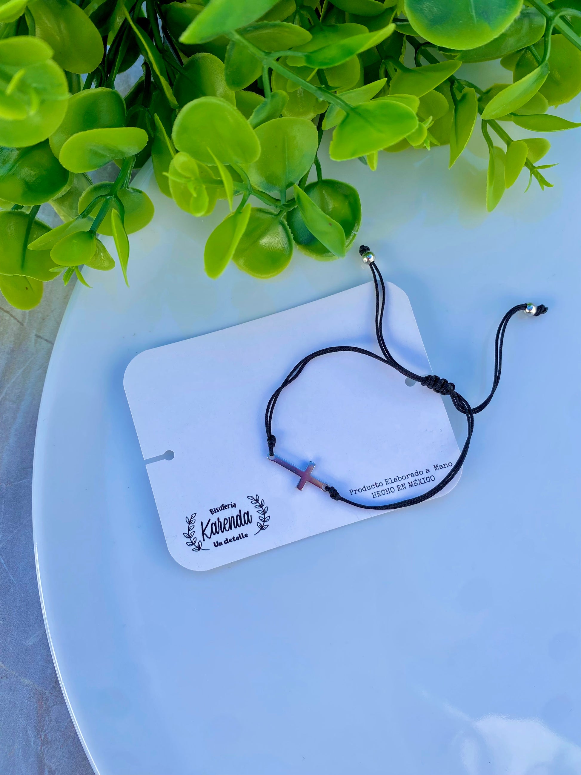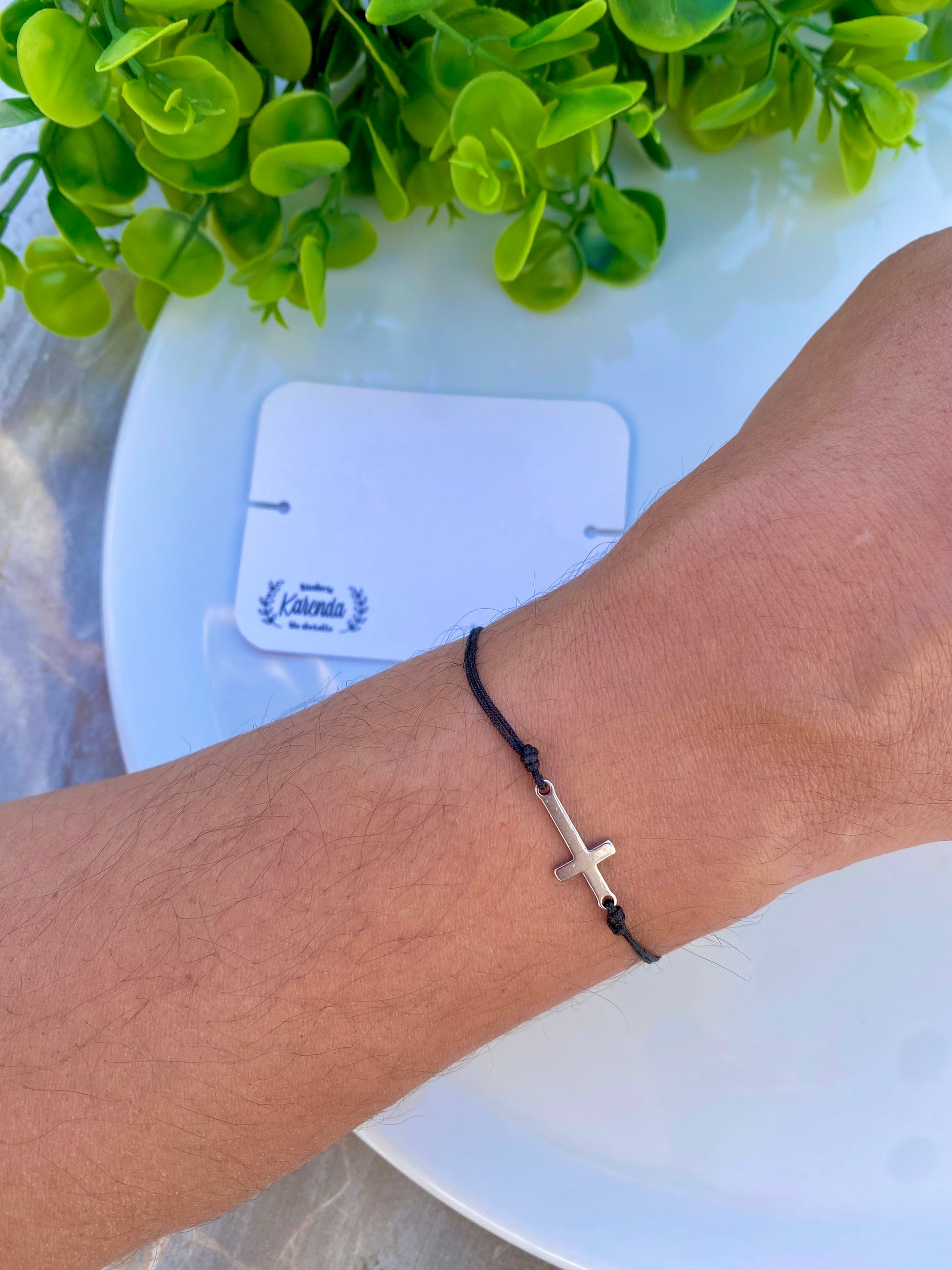Pulsera de Hilo elaborada con dije de Cruz de Acero Inoxidable.