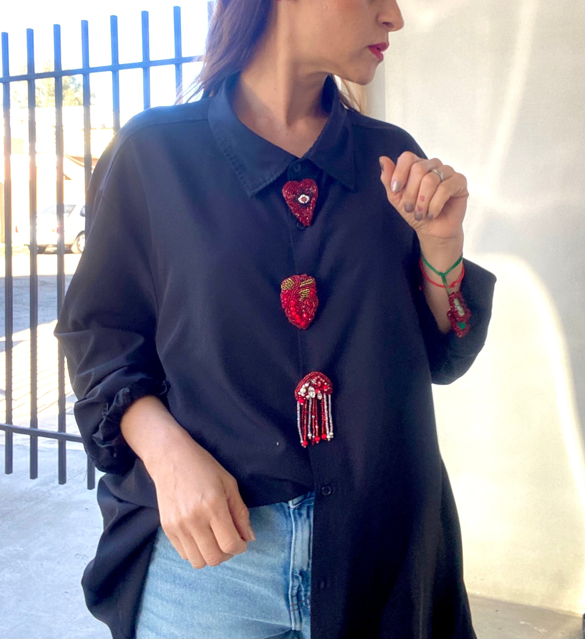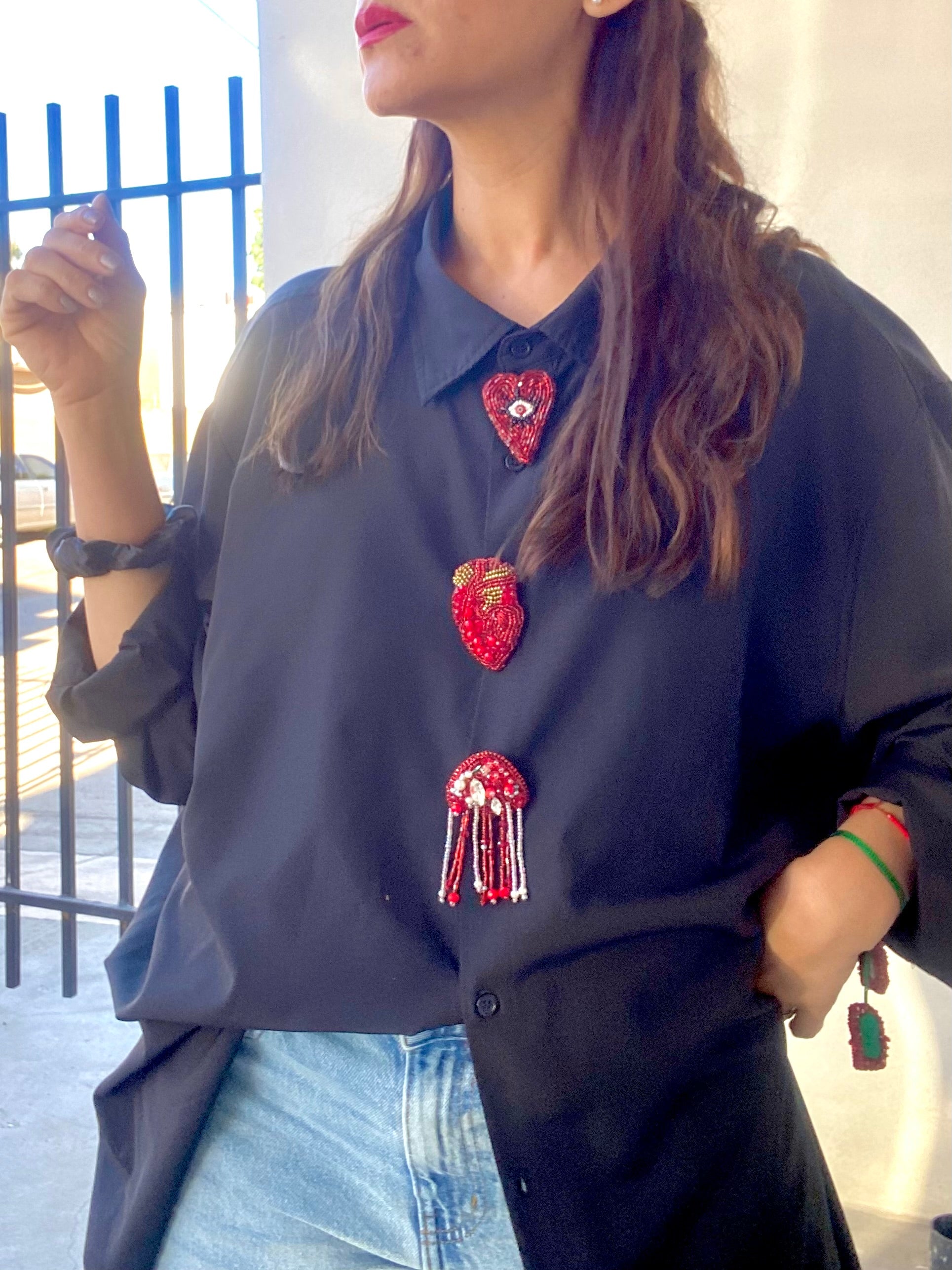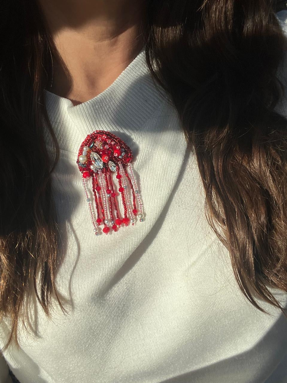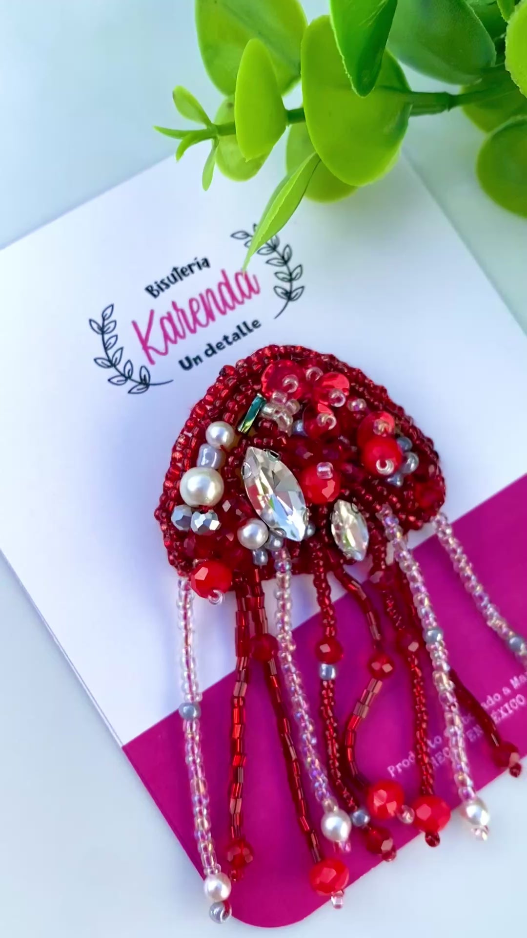 Broche elaborado a Mano, con forma de Medusa, detalles de Cristal y Chaquira